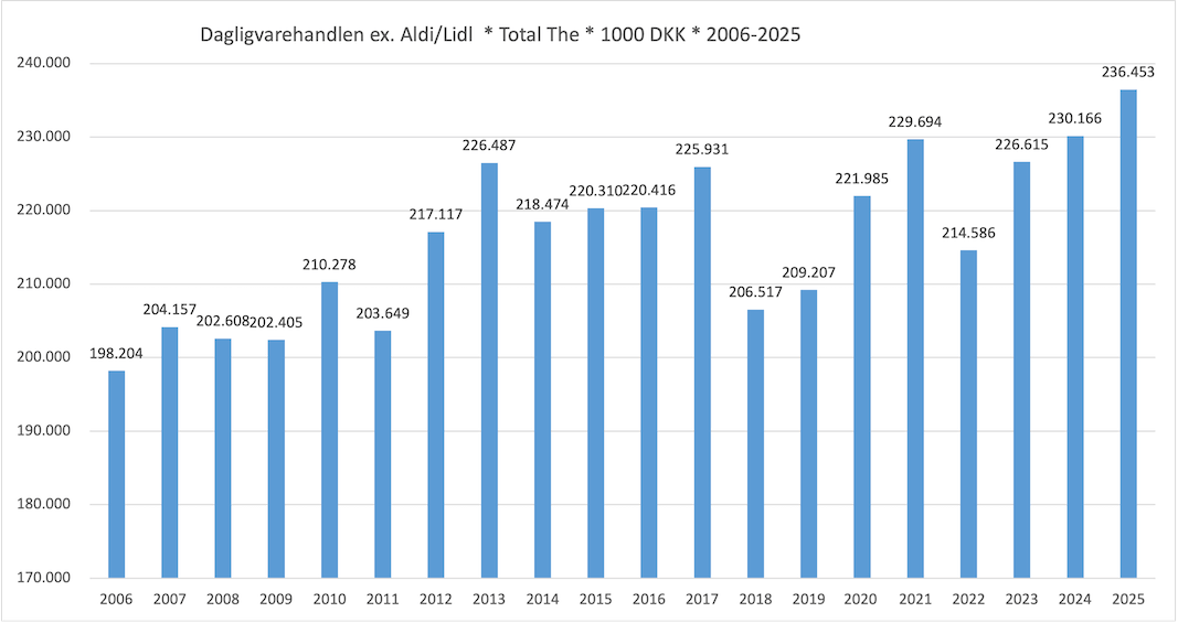 Tesalget i Danmark er en evig lillesøster til kaffen. Alligevel viser opgørelsen for 2025, at danskerne købte te i detailhandlen for over 236 millioner kroner. Det er en lille stigning i forhold til 2025, hvor salget endte på lidt mere end 230 millioner kroner – og det højeste niveau i den viste periode.